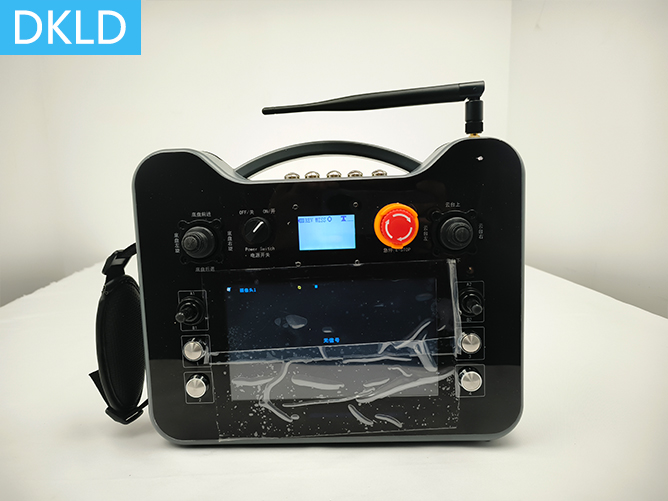 • 3个双轴摇杆+8个按键+1个两档旋转开关+1个5档旋转开关7寸触摸屏平板型工业无线遥控器